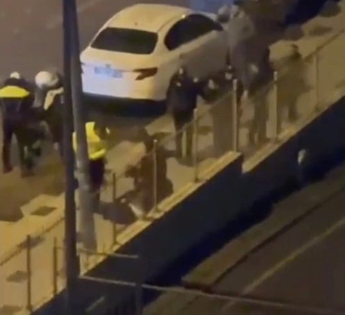Olay sırasında yaşanan arbede, çevredeki bir vatandaş tarafından cep telefonuyla kaydedildi.